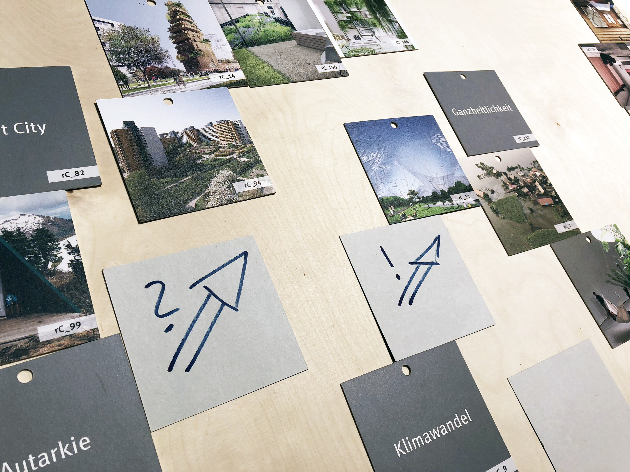 Was ist der Boden der Zukunft? Aus über 400 vorsortierten Bildern wurden Bild- und Text-Szenarien in Form einer Collage kreiert. In der anschließenden Diskussion wurden die Leitthemen definiert.