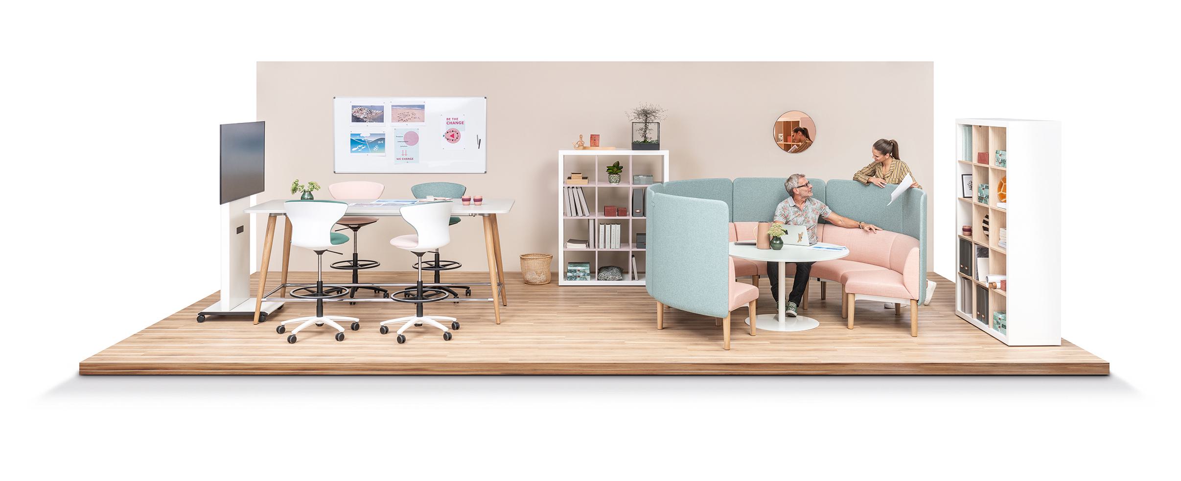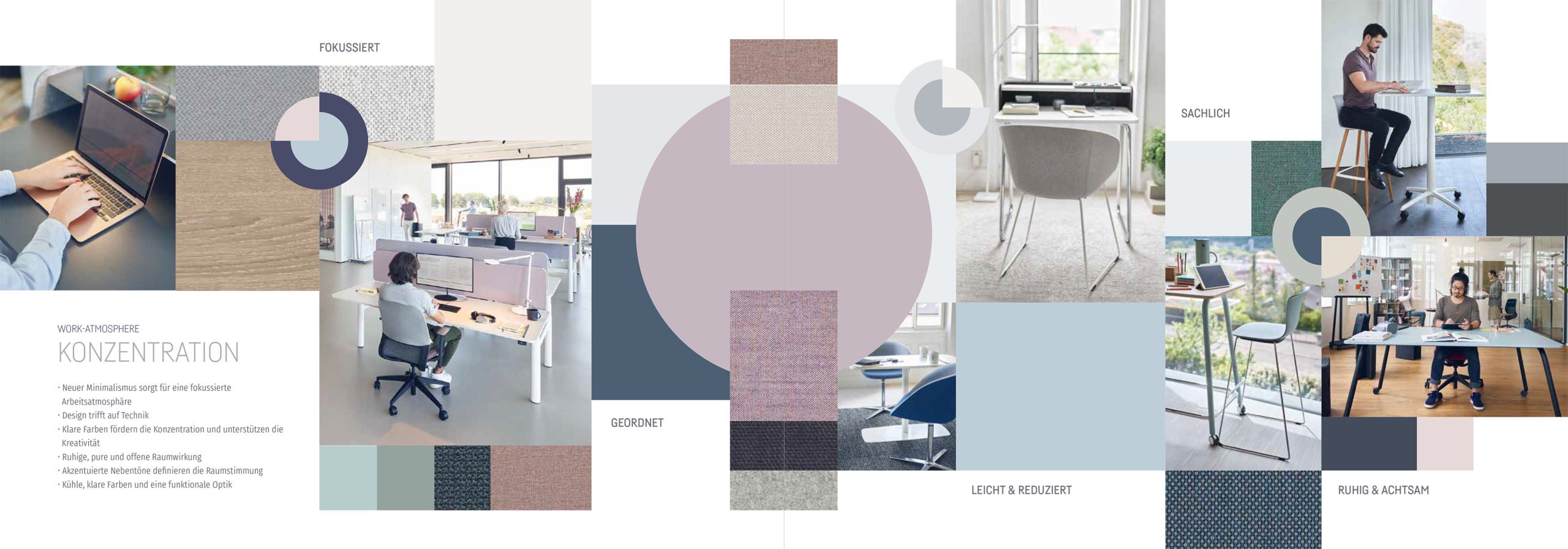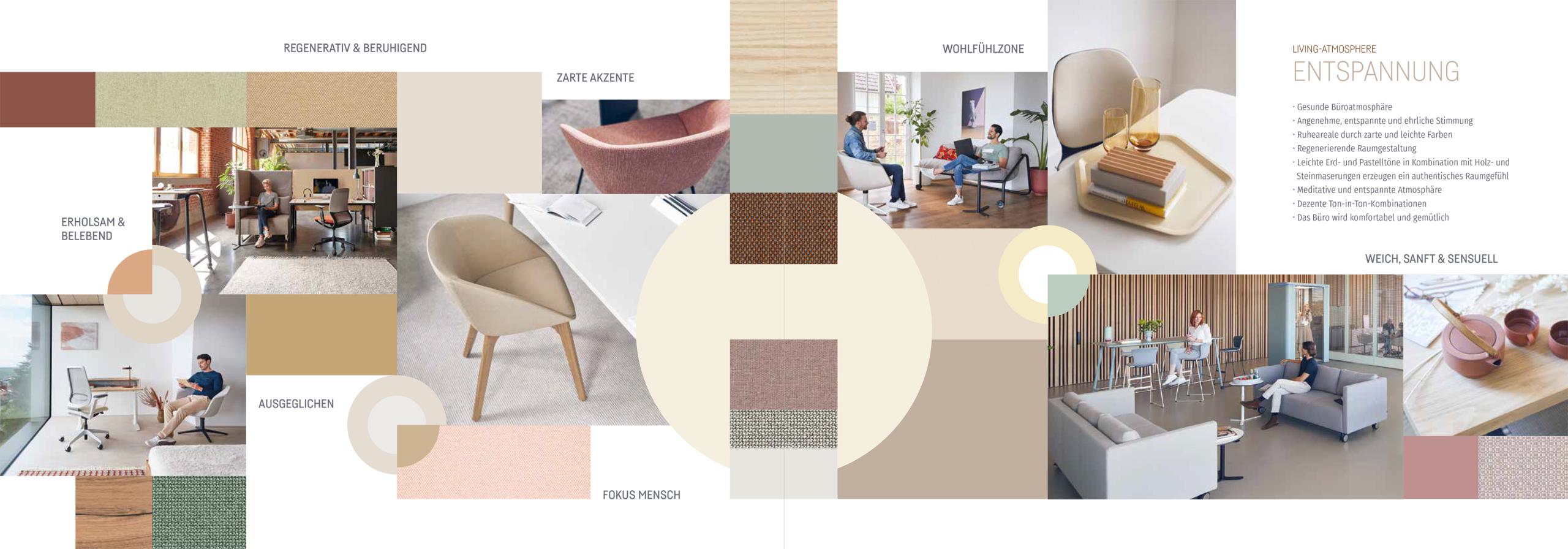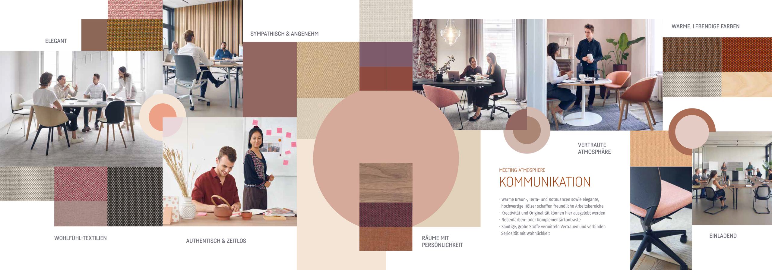 Die Bürowelt von Heute ist mehr als eine Umgebung des fokussierten und produktiven Arbeitens. Wohlbefinden, Entschleunigung und Agilität sind Themen, die uns beschäftigen und durch Materialien und Farben unterstützt werden können.