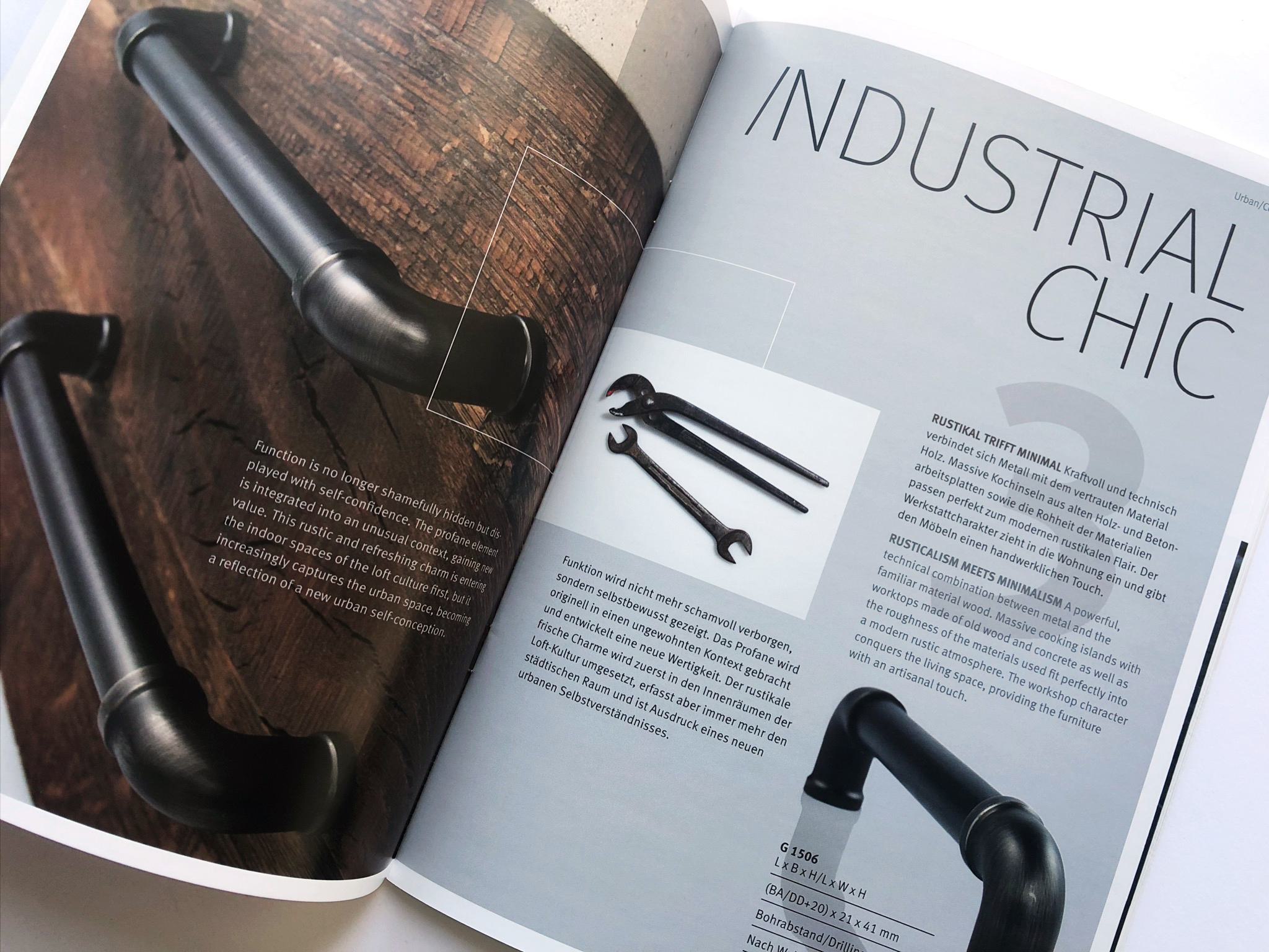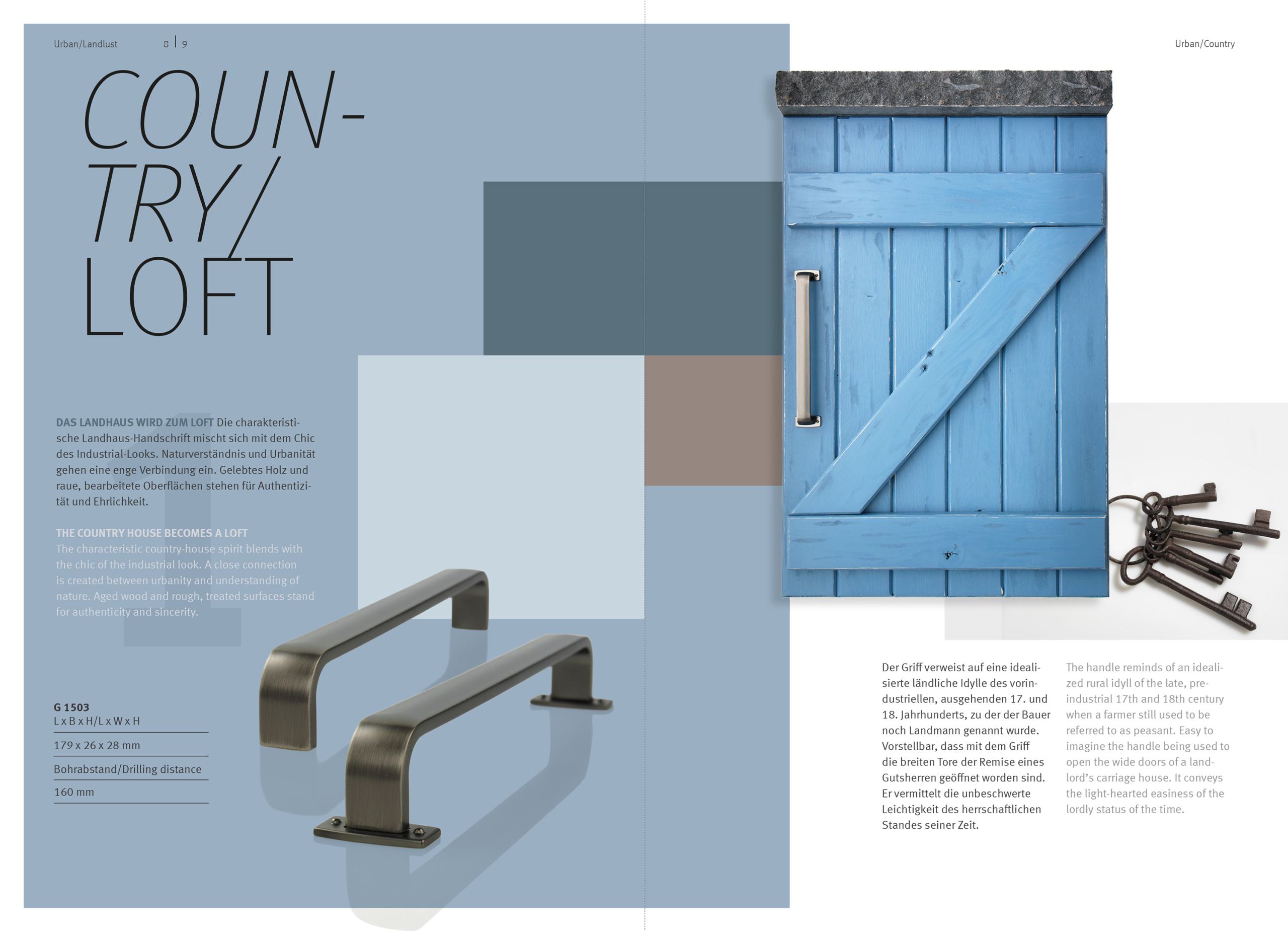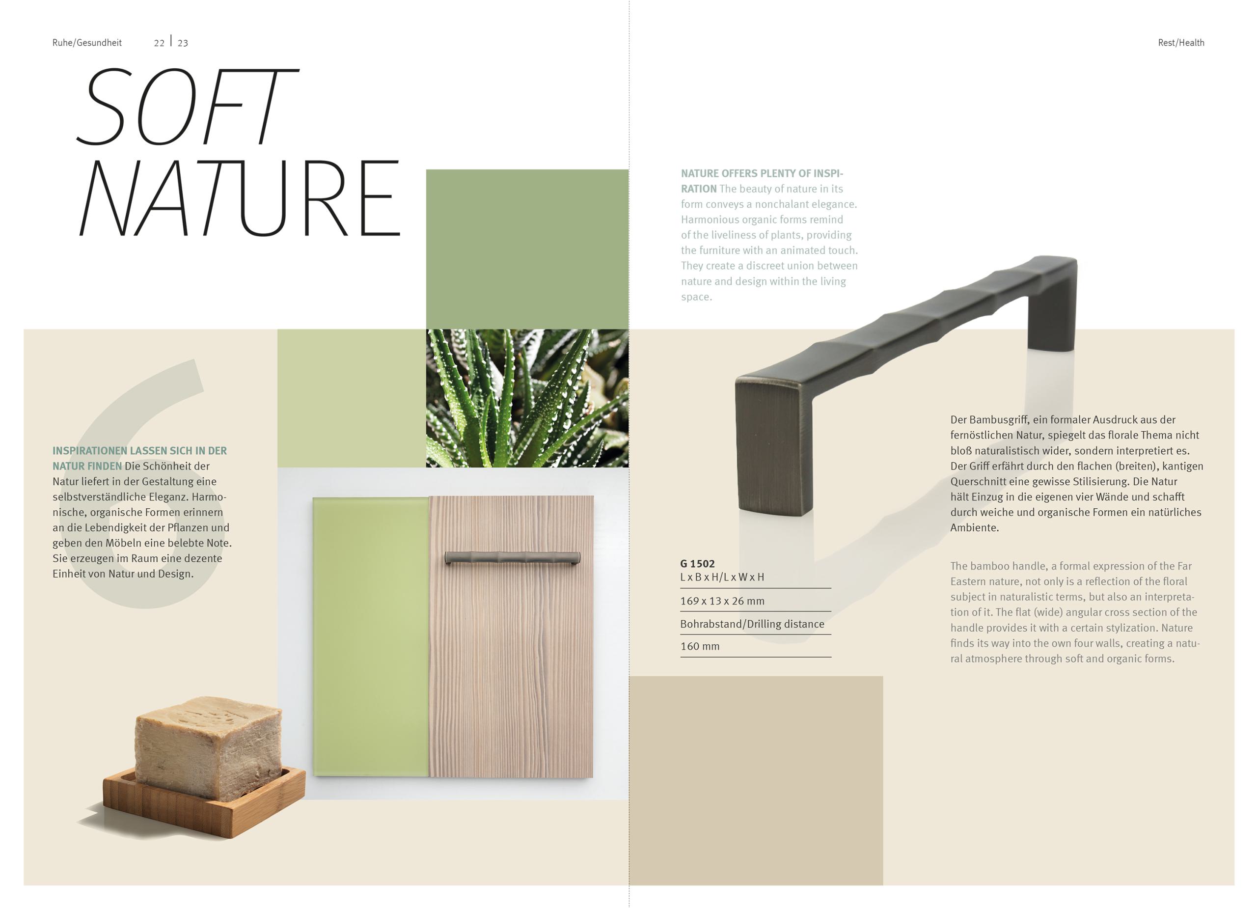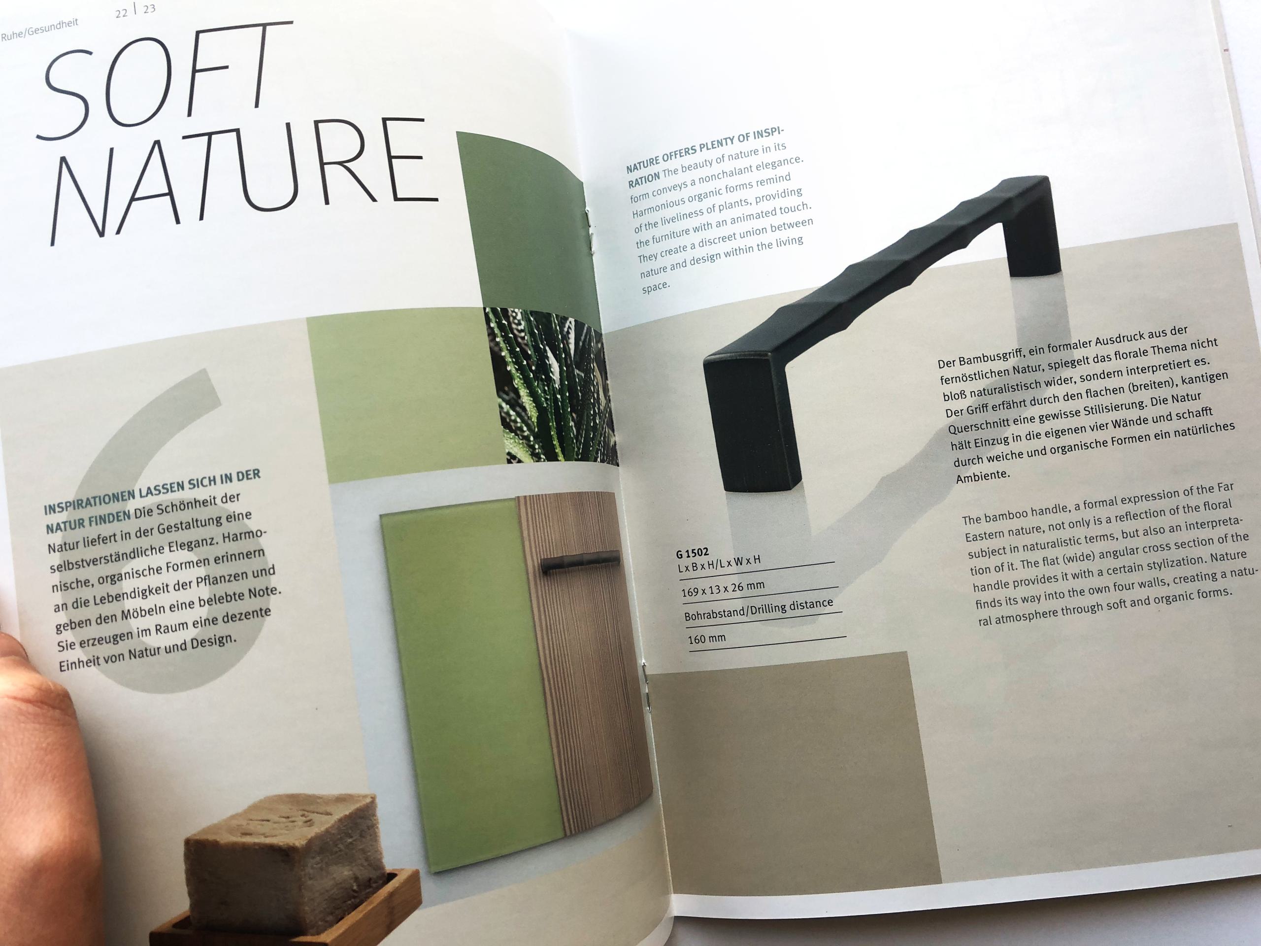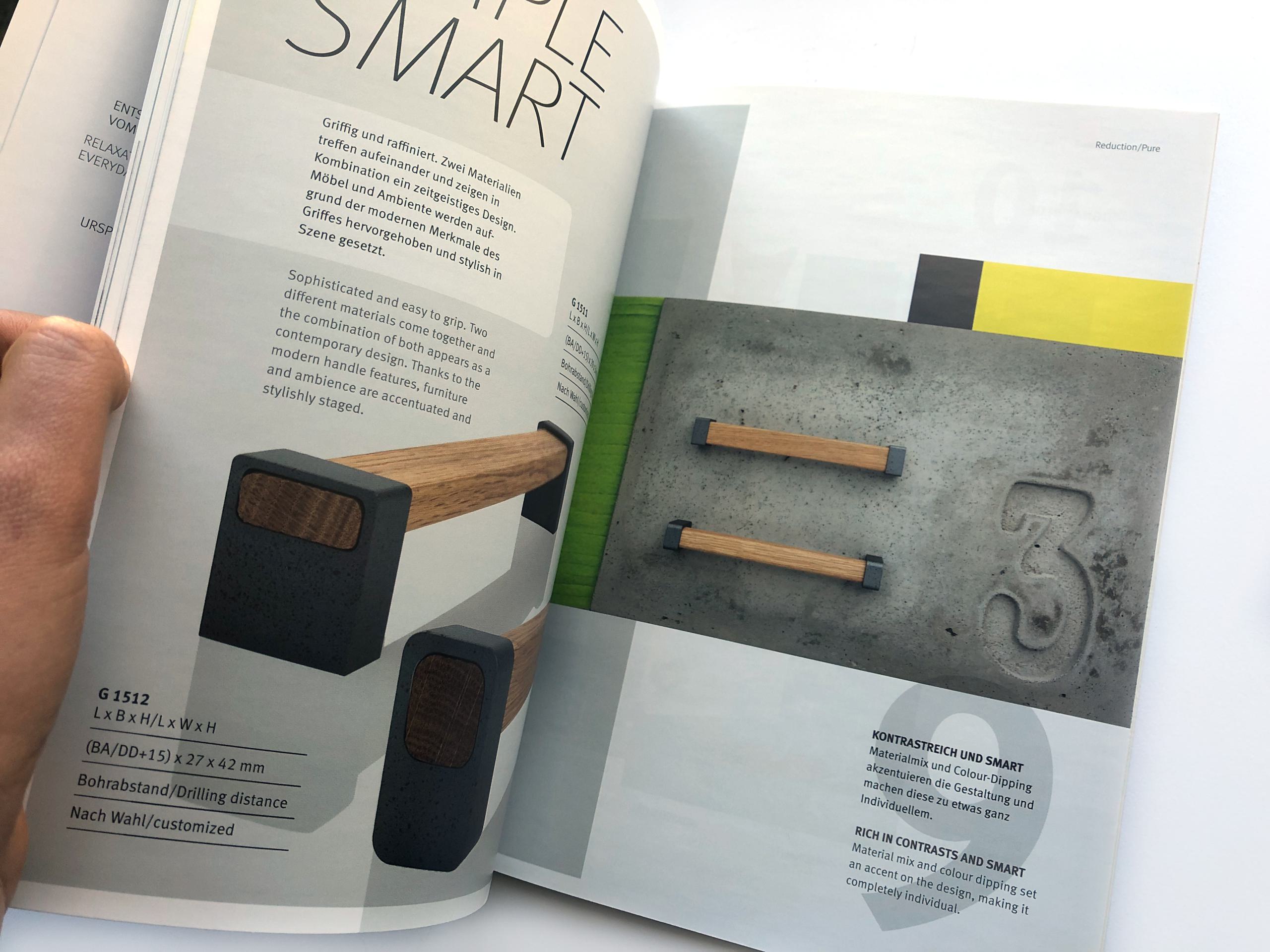 "Urbanität, Wohlfühlen, Gesundheit und Sicherheit ‒ diese Trends prägen das aktuelle Leben. Jeder Griff hat seine eigene, kreative Form, Farbe und Materialität und prägt damit das Möbelstück, gibt ihm sogar eine individuelle Identität!"