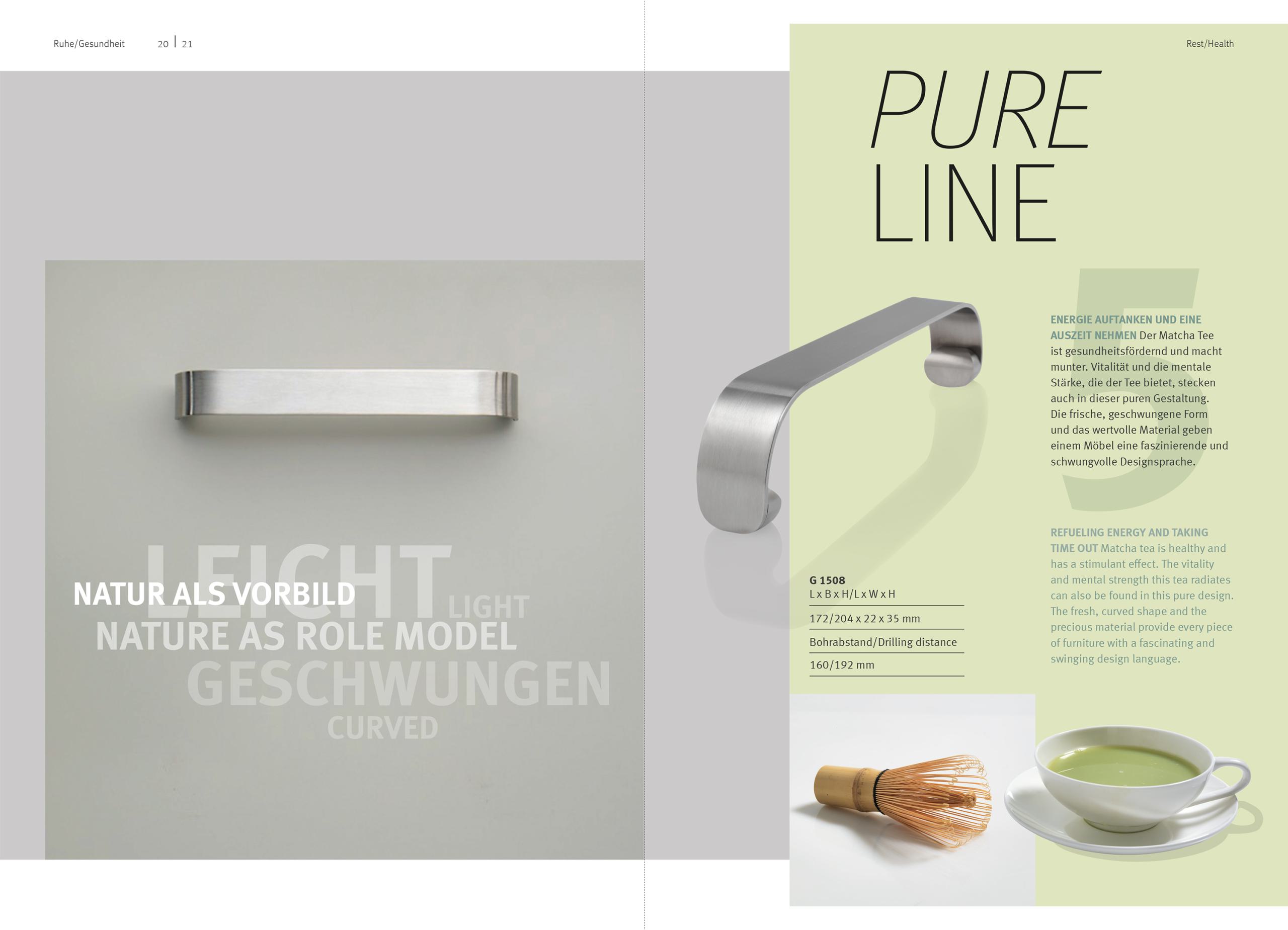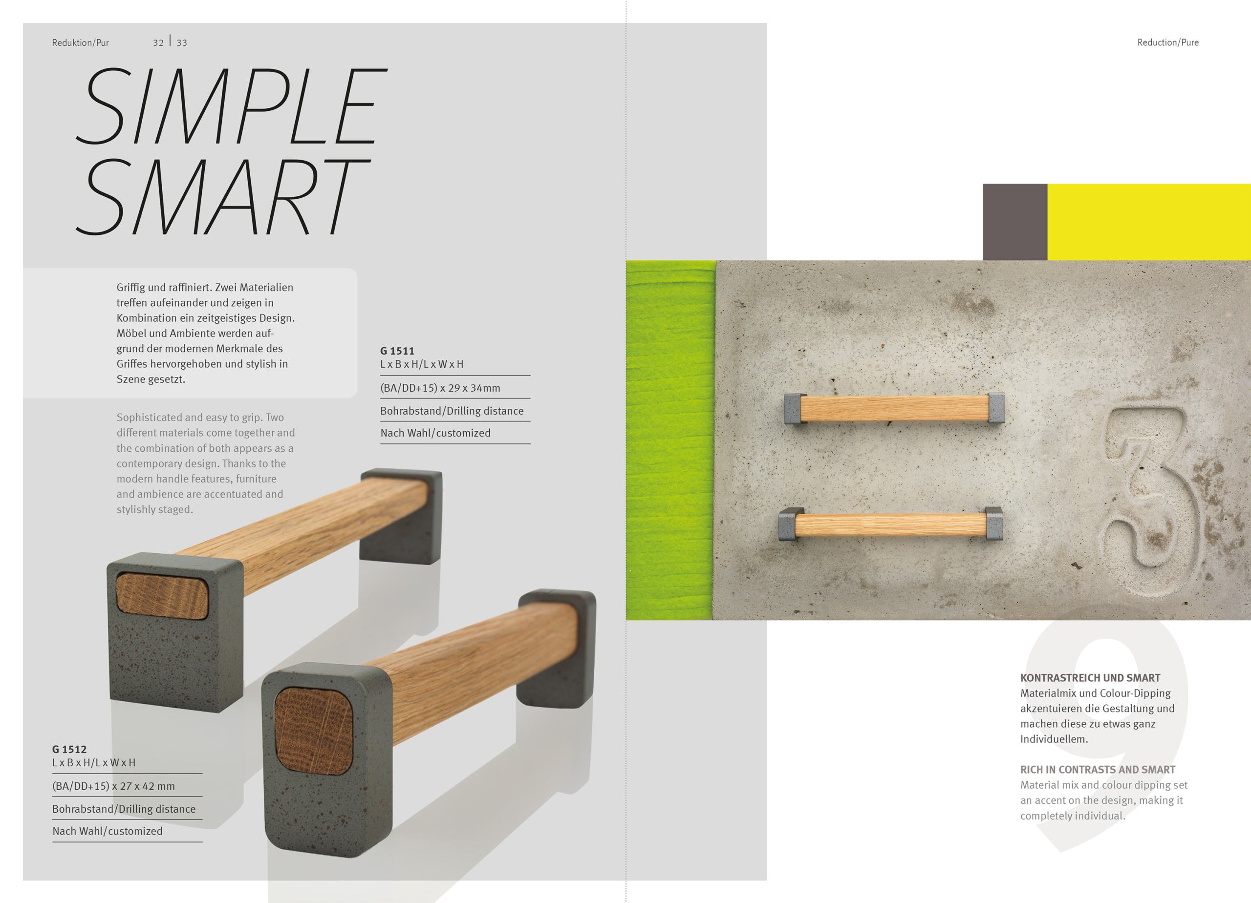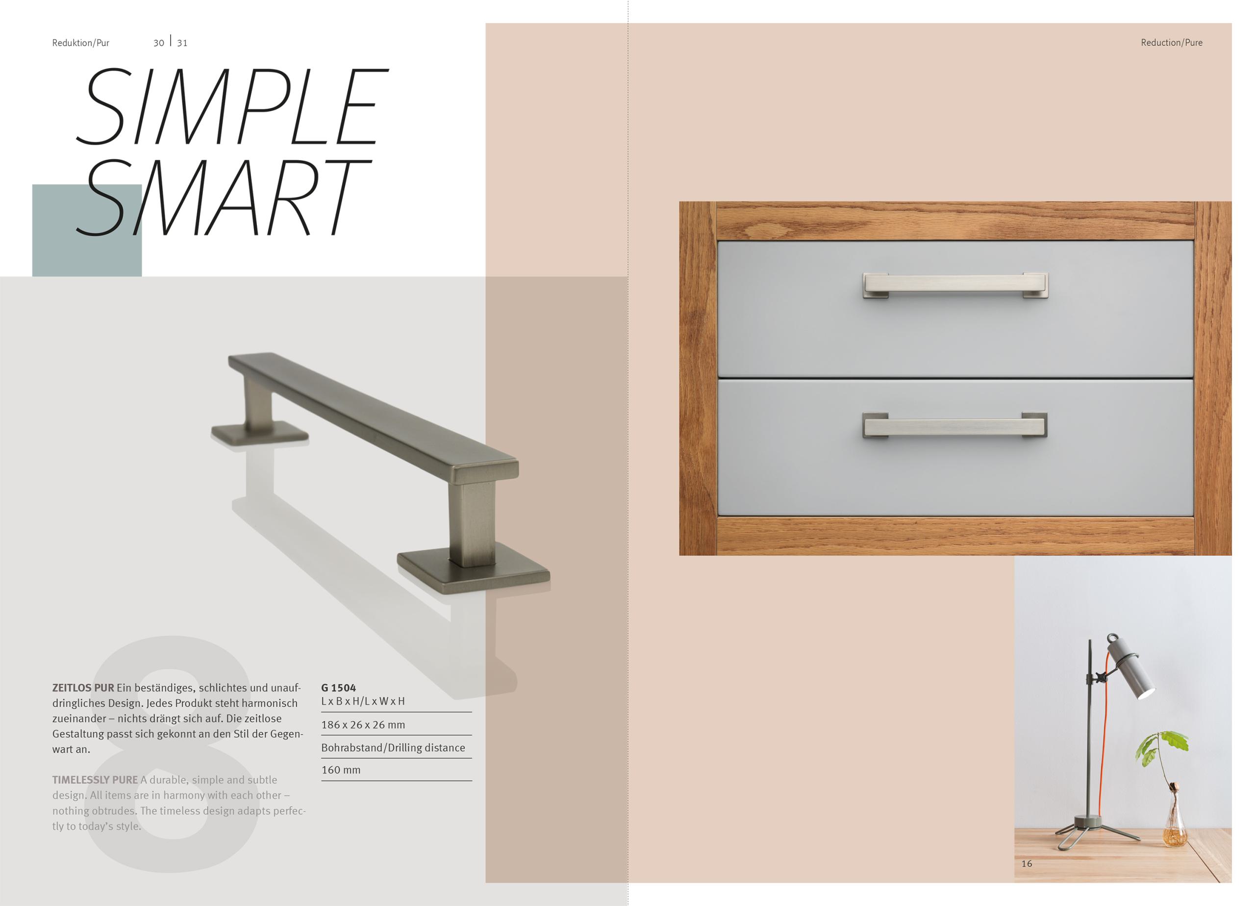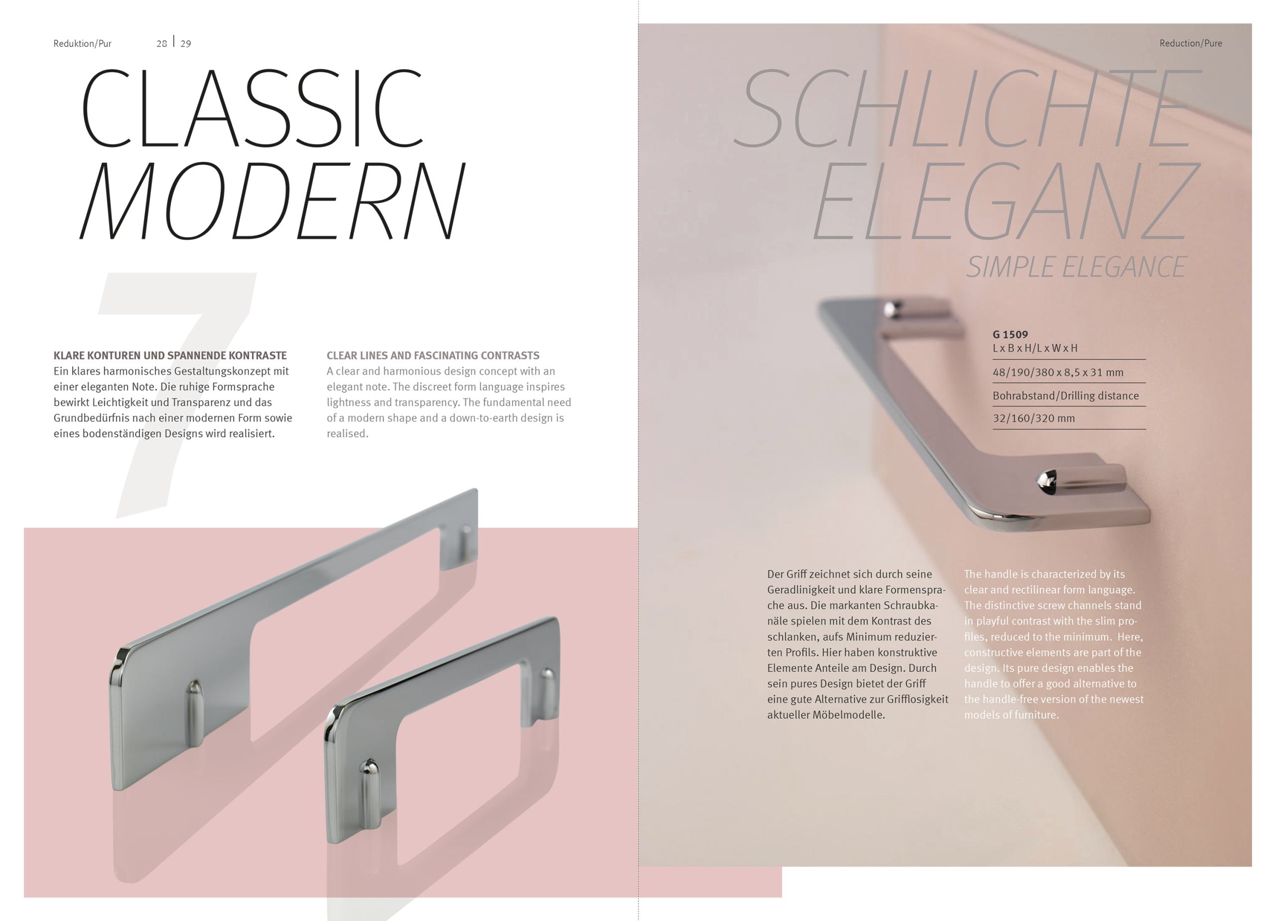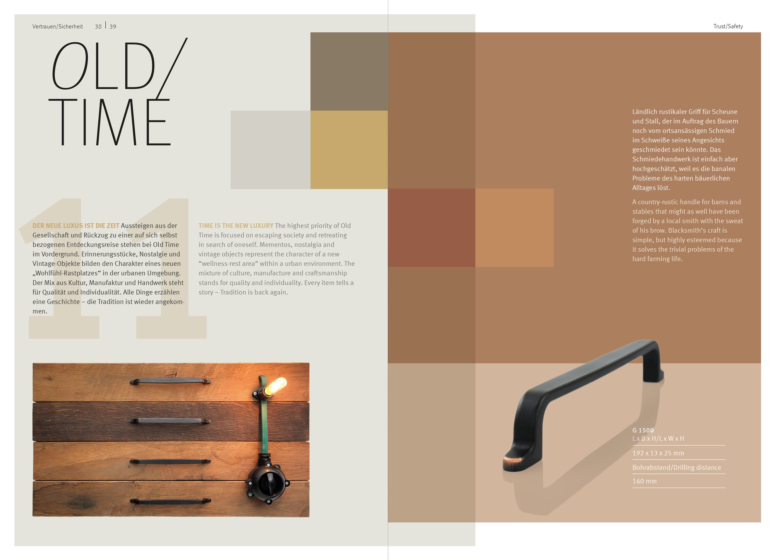 "Urbanität, Wohlfühlen, Gesundheit und Sicherheit ‒ diese Trends prägen das aktuelle Leben. Jeder Griff hat seine eigene, kreative Form, Farbe und Materialität und prägt damit das Möbelstück, gibt ihm sogar eine individuelle Identität!"